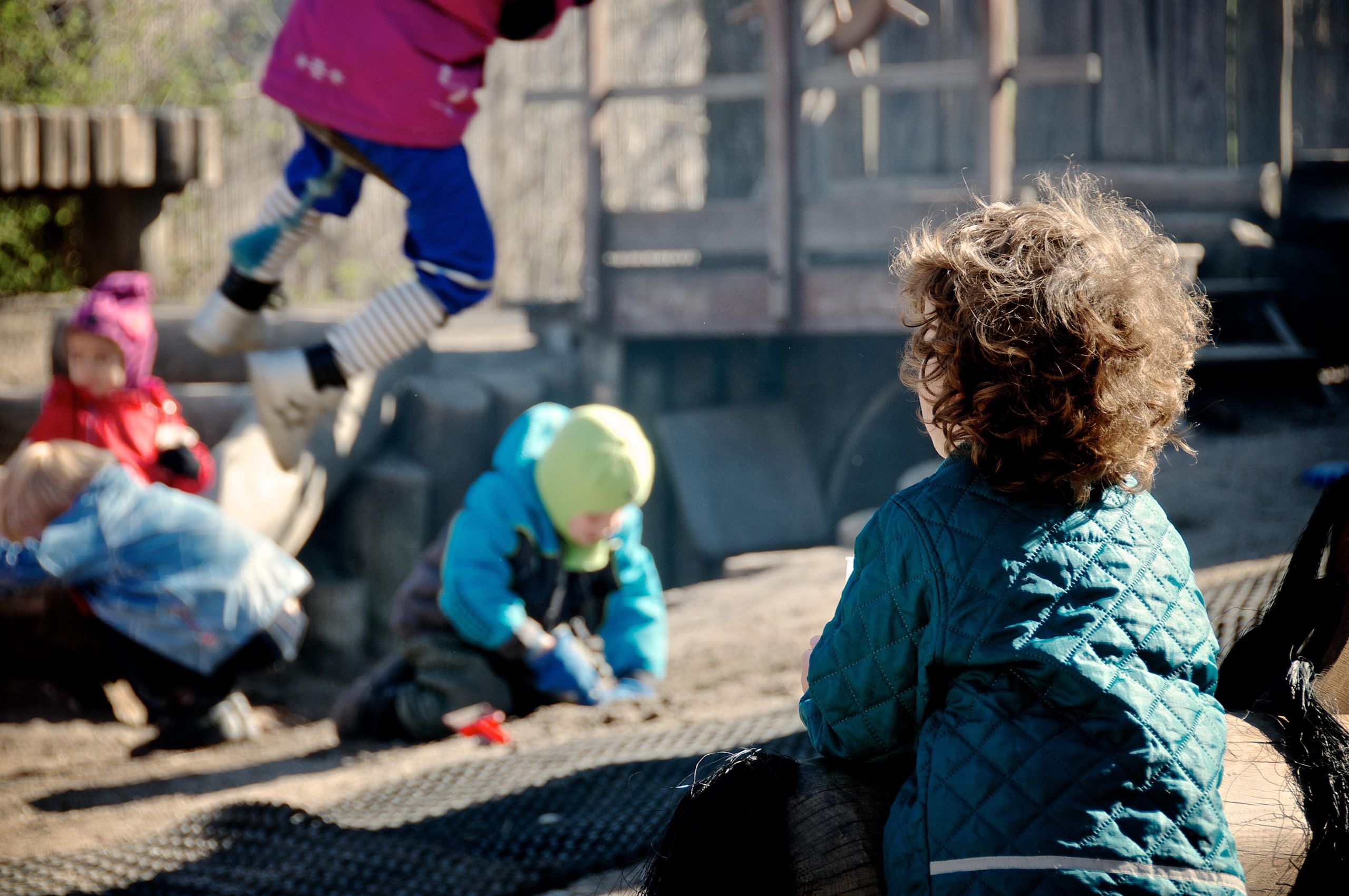 I forbindelse med legepladsen har vi et krybberum, hvor vuggestuebørnene sover til middag.